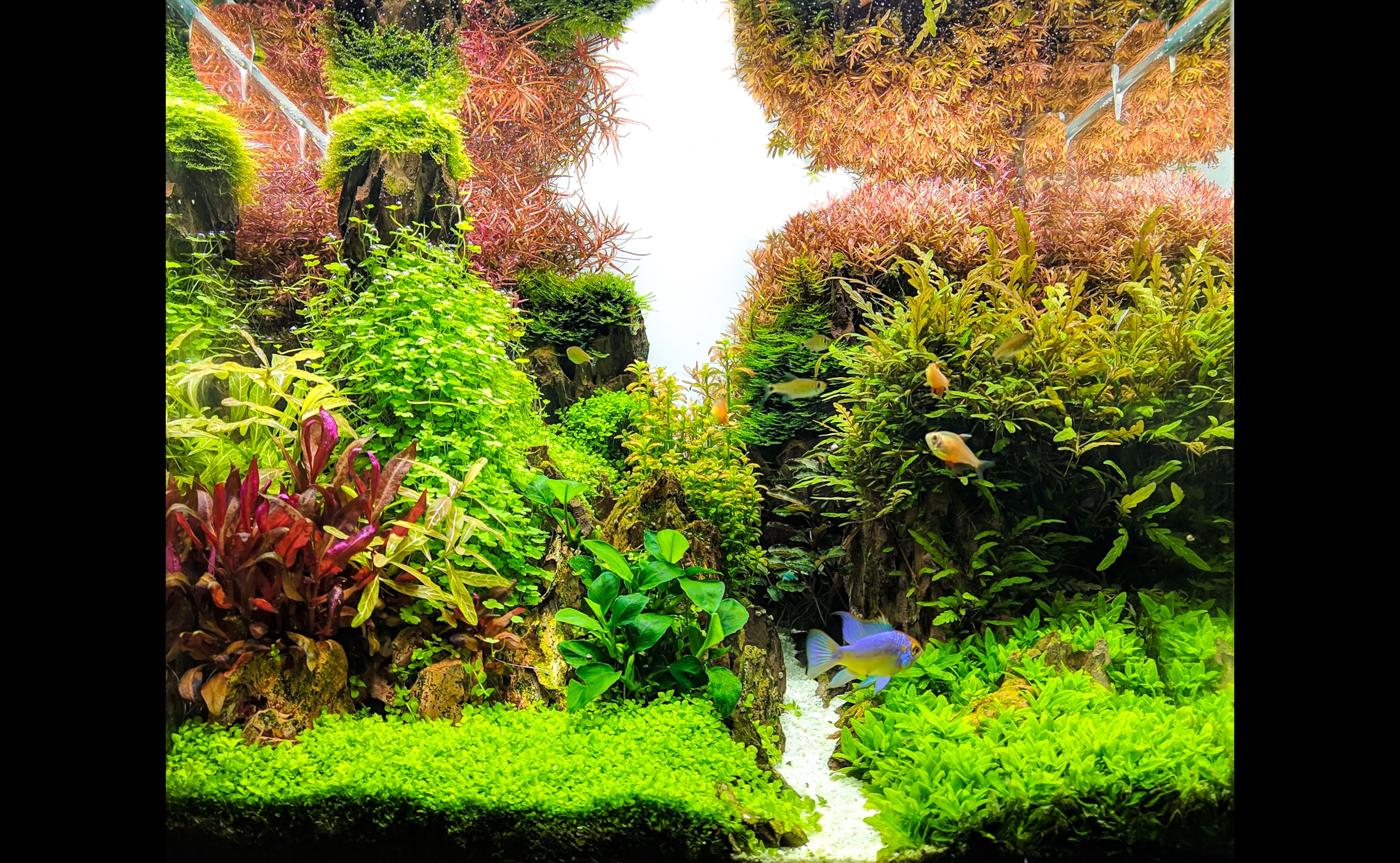 “Tente bater a foto em uma posição perpendicular, Evite equipamentos dentro do aquário. Utilize hardscape e trabalhe as plantas em diferentes planos. Utilize menos espécies e menos indivíduos de peixes. Reduza a elevação do substrato na parte frontal”. - Gregory Thom
